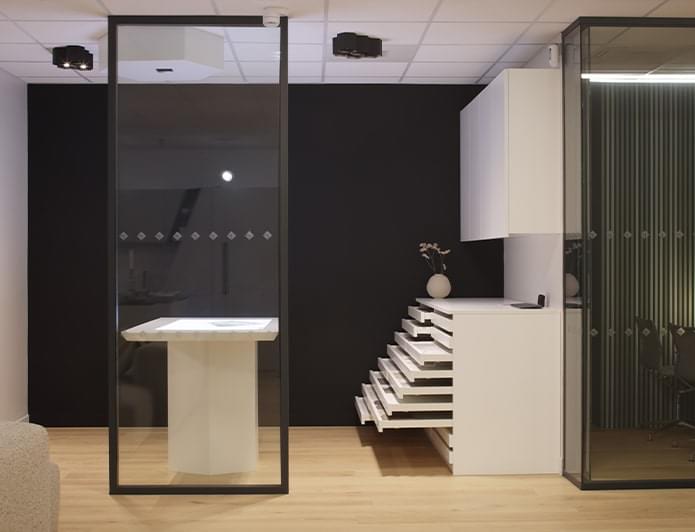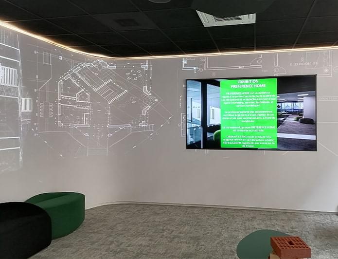 Il se veut tout d’abord être un lieu de rencontre convivial et chaleureux permettant aux clients de personnaliser leurs appartements et maisons en fonction de leurs goûts. Pour les accompagner dans cette démarche, des échantillons numériques de matériaux, des animations immersives et des configurateurs sur mappings interactifs sont mis à leur disposition.