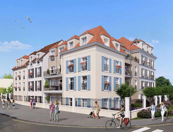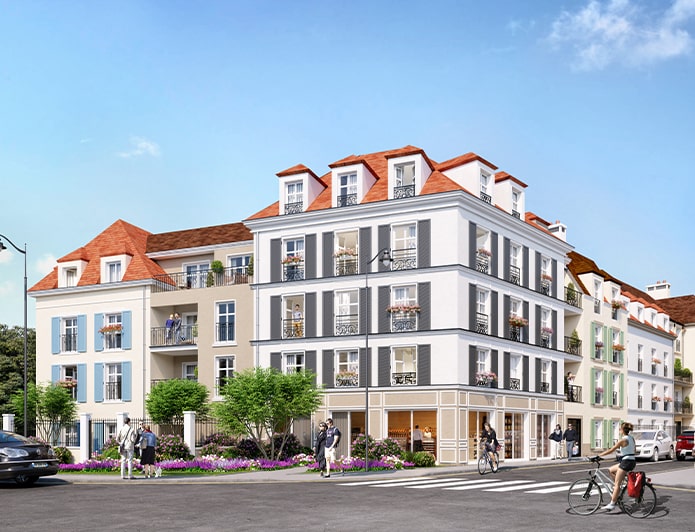 À l'angle formé par l'avenue de la Division Leclerc et la rue du Moulin à vent, la résidence vient embellir l'entrée du quartier Village. Son architecture, classique dans ses proportions, s'inspire de références traditionnelles franciliennes.